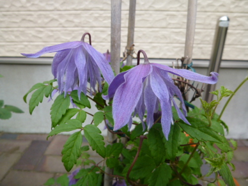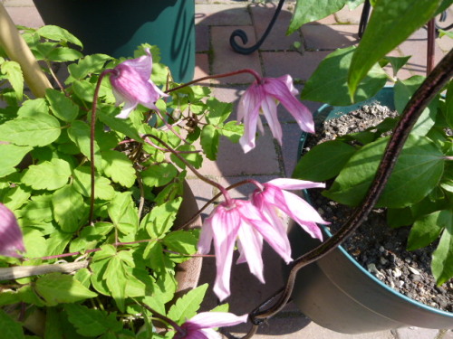 今日も風が強い!!昨日も強かった!!!クレマチス ピンクフラミンゴ咲いているおだまきさんが綺麗だぁ