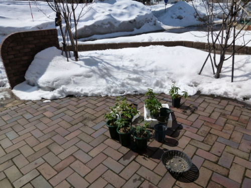 27日にこうだった花壇が今日はここまで雪が解けています。春はもうすぐ!!外に出したりしたのがまずかったのかなんということでしょうゴールドが倒れてます。2,3日前までは元気だったのに!種もできはじめてたのに(泣)茎元が茶色くなっています。思いきって切っちゃいましたよ(ToT)/~~~