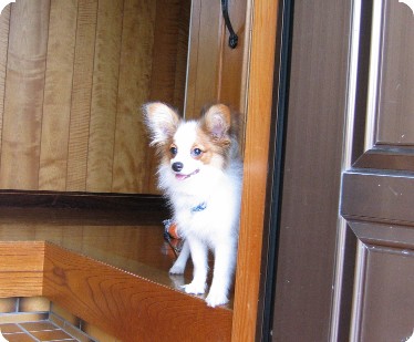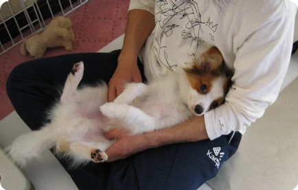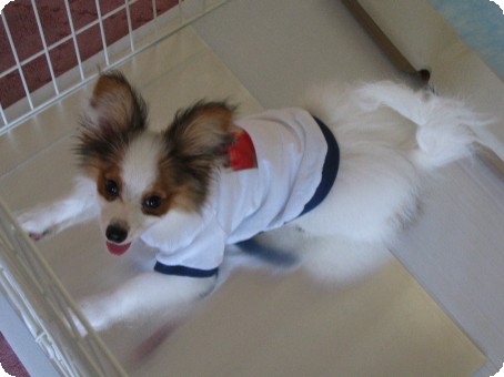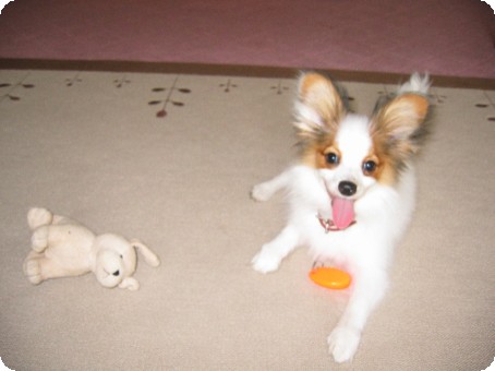 昨日の夕方、ただいま~と玄関に入るといつものように、お帰りのキャンキャンクリ~ど、どしたのその耳右耳に力が入ってなくて斜めになってる元気そうだけど、耳がかゆいみたいでキュイ~キュイ~と鳴いては擦り付けたりしてるし午前中はなんでもなかったし、何が起こったの~パピヨンは耳が命なのに~ちょっと微熱もあるかも~焦って掛かりつけの獣医さんに電話しても時間外だから出ないし・・・わけが分からず、アセアセとりあえず、耳を消毒して、丁度、蚤よけ首輪を買ってきたとこだったので嫌がるクリスに無理やり付けて、様子を見ました 夕食の間、おとなしくしていたので夜は寝てくれるな~とちょっと安心しばらくすると、な~んでも無かったようにお耳がピンっと元通りになってました~あ~良かった良かったまったくお騒がせなクリストファーでした~ エヘッ
