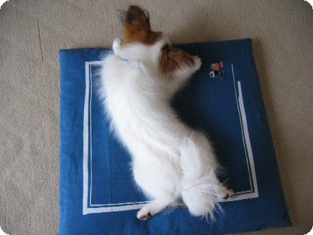 午前中干してあった座布団をクリスに取られた~ゴロ~ン気持ちいいな~ではここで1席皆さんにご披露してあげればイヤ~そんな~~照れるな~ワオ~ンありやとござした~ ぺロッえっそんで終わり~
