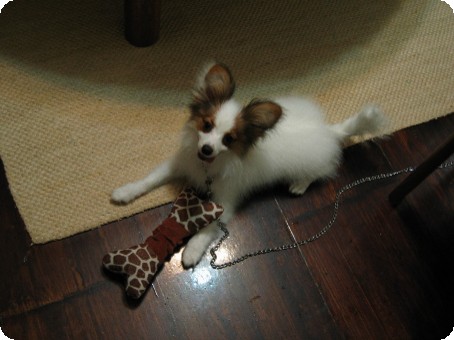 マミーがご飯作ってる間、足元で遊んでます人間のご飯を食べたことが無いからか、においがしても欲しがりません団子よりおもちゃのクリスです・・・洗いたてのクリスなのでフワフワで気持ちいい~~ さわさわ