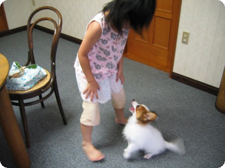 月曜日になるとマミィのところに来るボクのお友達!いつも英語でおゃべりしたりお歌を歌ったりしているよ~ちょっと今日はボクもお勉強に参加させてもらったよ~うれしくてピョンピョ~ンでも お座り って言ってもらったらちゃ~んと出来たよまた遊んでね