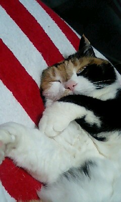 爆睡中で