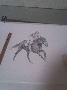 こんばんわ昨日のアメトーーク競馬芸人でしたね~(あんまし解んないけど・・・)おもしろかったです その中でナイツの土屋さんが絵を披露してました!すごく上手!!!!ホトちゃんもらってうれしそうだった うちの旦那さんも競馬好き土屋さんの絵が欲しそうだったのでかわりに・わたしが・・・かいてみました・・・・・ じゃ~~んえ?びみょ~~??? 旦那さんの苦笑いの顏が目に浮かびますはやく帰ってこないかなぁ