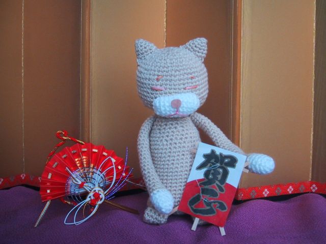 みなさま、新年あけまして、オメデトウございます~☆今年もどうぞ、よろしくお願いしマス!!旧年中はなにかとバタバタしてしまいましたが、皆ミナ様の、一方ならぬご愛顧を賜り、こうして一同、つつがなく新年を迎えることができました。新年も、新たなキモチで精進し、よりいっそう自分自身にも磨きをかけて参りたいとおもっております。今後とも、暖かく見守ってくださいますよう、一同ココロをこめまして、ァ、隅からスミまでぇ、ずずずぃ~~~っと、『よろしくお願い申し上げたてまつりまするぅぅぅぅぅ~~~~!!』セバスチャン「・・・こんなカンジでよかったカナ?」ジャンカルロ「ウン、僕たちにしては上々だったよ。セバスチャン、コブシきいてたよ」セバスチャン「エヘ、夕べからちょっと練習したもんネ♪」ヴァレンティーノ「今日はさすがに『和風』だね。やっぱり落ち着くなぁ。」フェルナンド「・・・じゃ、そろそろチャンピオンとしての口上を・・・。」ビリー「あっ!フェルナンド!う、ウシロに誰かいるよ!?」ジャンカルロ「ホ、本当だ!・・・そんなトコロに隠れていないで、出ておいでよ~」セバスチャン「さぁさぁ、ドウゾ!」・・・・モジモジ。。。「じゃあ、お邪魔しますぅ」「いやぁ、はじめまして。 おたくのスィニョーラのお母様が、あっしの製作者なんですヨ。」ビリー「オゥ!そうなんだ!じゃあ家族も同然じゃないですか!よろしくね」「ですが、あのぅ、じつはあっしはまだ名前が無いんで」セバスチャン「そいつはてぇへんだ!(・・・なんだこのセリフ回しは?)でも、勝手に名前をつけるわけにもいかないし。 早く名前が出来るといいネ。」「・・・へぃ。・・・・あ、それからみなさん、じつは今日はあっしの親分も一緒なんで、ぜひ皆さんにご挨拶を、と言ってますんで、ヒトツ呼んできてもようござんすか?」セバスチャン「そいつはもっともでござんすヨ!ぜひ、ご挨拶させていただかないと」「・・・へぃ、じゃあ。・・・親分、おやぶ~~ん!!」親分「おひけぇなすって! ウチの若ぇモンがお世話になりました」セバスチャン「イエ、こちらこそ。じゃ、アナタ様もスィニョーラのお母様が?」親分「いや、あっしはまた、違うんで。あっしを作ってくださったのはお宅のスィニョーラのおあ姐さんですよ」セバスチャン「おお~!」親分「お互いファミリーってことで、今後ともよろしくお願いしますよ」セバスチャン「(・・・ファミリーって、もしかしてゴッドファーザーとか見てる??)はぁ、どうぞよろしく」お正月なので、トクベツに、母と姉のあみねこたちもデビュー!しました~(笑)。やっぱり「手」が変わると表情も大きさもガラッとかわりますネ。この「親分&子分」にはまた時々登場していただくことにします(笑)。名前考えてもらわないとダメですネ。。そのころのラガッツェ。メルセデス「日本のお正月ってステキね、おほほほ」ベリーちゃん「なんだか背筋が伸びるキモチだわ。ちょっとおすましして、記念撮影ネ☆」と、いうことで、女の子たちはおすましして、記念撮影・・・で、最後に、みくちゃんからも、新年のご挨拶・・・?みくちゃん「・・・なんだかコレ、固いわね。ガジガジ」こら~~~~!!