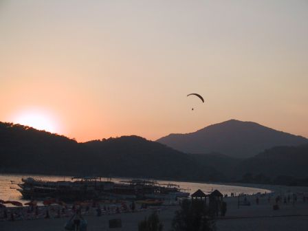 沈み始めるころは、パラグライダーで空中遊泳がオススメ。申し込むと車で1時間ほ