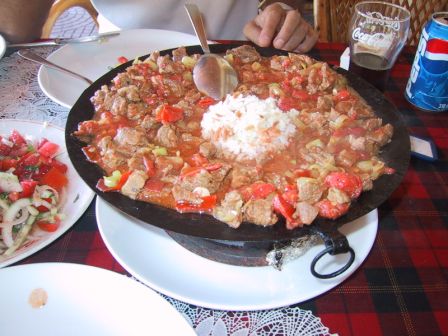 カッパドキアでラクダに乗ってみました。うまれて初めてラクダに乗りましたが、メッチャ怖かったです。お客を乗せるために座っててくれるんですが、乗っていざラクダが立ち上がるとその高さにひぇぇ~。しかも歩くとものすごくゆれるんです!!ぎぇぇぇっとか叫んでるのに、ラクダを引いてる子供は知らん顔でずんずん歩いてるし。ほんの数分のことですが、絶叫してました(トホホ)。このあたりはギョレメ屋外博物館、というところで、キリスト教の岩窟教会が保存状態も素晴らしく残っていて、当時の色鮮やかなフレスコ画を間近で見ることが出来ます。ちょうどイタリア人のグループが来ていて、すれ違いザマに「チャオ、ベッラ!ドヴェヴァーイ?(直訳は「やあ美人さん、何処へ行くの?」という意味ですがあの言い方は「よぅねーちゃん、ドコにいくんだぃ?」てなニュアンスでした)」なんて声かけられました。全く余裕のナイ私は「アアア、ア~ィウ~トォォォ!(たたた、たーすーけーてー)」しか言い返せませんでした。ま、いい思い出です。ただ、もう乗りたくないです。