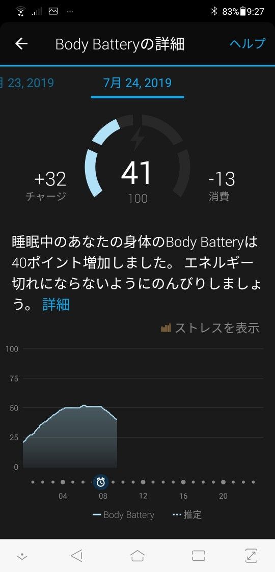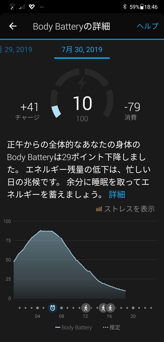 Bodybatteryが切れそう。今日はもう寝るしかないかな。動けない事はないが明日バテてしまうかも知れない。
