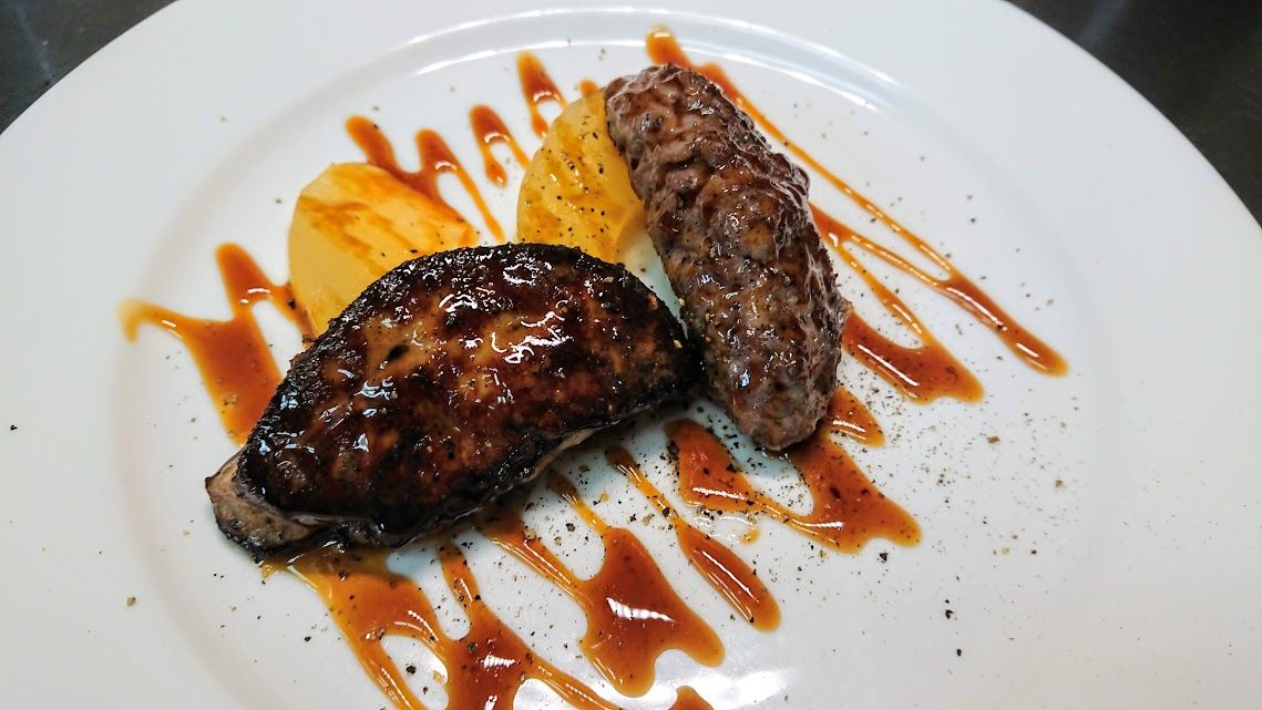 Saucisson de Marcassin sans peau et Foie gras chaud