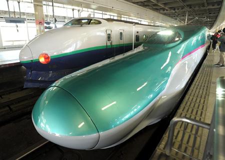 3月5日にデビューした東北新幹線『はやぶさ』 スゴイ、斬新なデザインと色ですね。上半分は常盤グリーン、下が飛雲ホワイト、真ん中のラインがつつじピンクだそうです。15メートルものロングノーズ。(頭の部分、めっちゃ長いです!)これは、トンネル内の気圧や騒音、振動を減少させるためだそうです。そして、2013年春からの秋田新幹線『こまち』の新型車両はこれ。 この赤色は、茜色だそうです。そして、この新幹線は、あのフェラーリをデザインしている奥山氏、監修だって~これまたすごい秋田のりんごやなまはげのお祭りを意識した赤ですが、フェラーリの赤色かも~品もあって、かわいいですね試運転では雪も降っていて、頭の部分(口の部分?)が白くなって、これまた素敵な感じでした。昨今、飛行機に流れている乗客を取り戻そうと、JRさんもいろいろと工夫をしてますね。今までお堅いというか、機能一辺倒だったものを(それはそれですごいですが)、乗ってみたい新幹線を、という発想で、これまでにないものです。すばらしいね~こういう所にまでクリエイティブさが発揮されてきている現代。確かに、こんな新幹線には乗ってみた~いはやぶさの方は、グランクラスといって飛行機のファーストクラス並みのサービスもあるとか。グリーン料金プラス5000円なので、いいかも~でも、競争率非常に高く、なかなかとれそうにないみたいですが・・・東北という地域柄だからでしょうか、これらの鮮やかな色がとってもいいですね。白銀の世界になる冬に、こんな色合いの新幹線が走っているのも見てみたいこんな色合いのように、私たちの心はいつも楽しくありたいですね