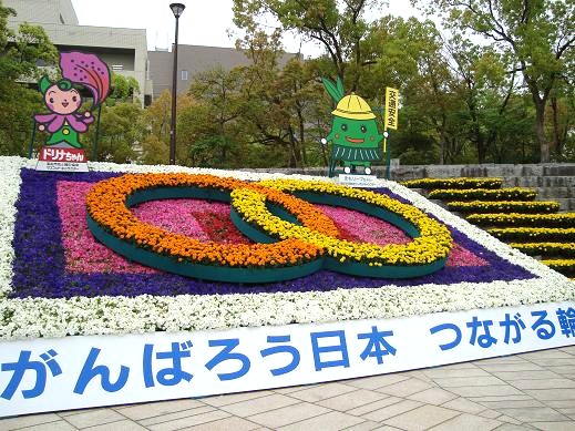 宮城県の名取市は東北一のカーネーション産地なんですね。でも、津波でほぼ壊滅状態・・・津波1メートルの浸水にあい、泥やゴミをかぶり、もう今年は花は咲かないと思っていたら、なんと、カーネーションが倒れながら蕾をつけ始め、花が咲き始めたって。出荷できるような状態ではないらしいが、せっかく咲いたカーネーション、泥を丁寧に落とし、格安で提供しているとのこと。母の日も近いし、亡くなった方にお供えするお花も少ないことや、やっぱりお花で元気を~という思いがあったようです。テレビで見る限りは、泥をかぶっていたとは思えないほど、きれいな可愛いカーネーションたち。今年はカーネーションは無理かも・・と思っていた人や、入院している人にお見舞いに、という方々が嬉しそうに選んで買って行かれていました。かわいい女の子も、おかあさんにあげる~って売ってても実際利益にはほとんどならないそうだけど、少しでも皆さんにお花を届けたくて~と、お話されていました。泥をかぶり、しかも塩水につかると植物はダメになるのに、すごい生命力ですね。津波にあいながらも、桜が咲いたというのもあったし、津波で流され、折れた桜の木から咲いた! というのもありましたね。植物との共存、そしてこれからはひとの生命力の強さを発揮する時ですね。昨日のフラワーフェスティバル