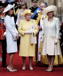 私は今日は仕事だったにも関わらず、世間がゴールデンウィークのためなのか、何となくエネルギーが休み~という感じなので? ネタもなく、またまたロイヤルウエディングネタで(苦笑)メインのおふたりではなく、おばあさまにあたるエリザベス女王。明るいイエローのドレスをお召しでしたね。初めて、あのドレスを見た時、イエローと一瞬思いました。イエローやオレンジには子供っぽさや庶民的な意味合いがあるので、例えば、その後の友人だけの会や二次会にはOKなのですが、正式な場ではあまり見かけない色なのです。だから、ドレスもイエローやオレンジの色のものはあまり売ってないと思います。でも、あのエリザベス女王のお召しになっていたイエローのドレスは明るさと若さと品の良さを感じましたね~一般の人や、他の方が着ていたら、もしかしたらちょっと見劣りしていたかもしれませんがきっとエリザベス女王の貫録もあったのかもしれませんね。かわいい孫の結婚式で、とっても喜んでいる心の色であり、もしかしたら、これからのイギリス王室の未来を王子に託し、明るい未来を希望してそれにしても、85歳には到底見えません!85歳で、あのイエローは着こなせるなんて、すばらしい。背筋もシャンとしていらっしゃいますし、ヒールもはいてらっしゃいましたものね。日本は、年齢を重ねると地味な色合いのものを着てしまいがちですが、外国のように(こんなひとまとめでいいのか 笑)どんどん明るい色を着れるといいな~ 画像があまりよくありませんが、テレビで見たのはもっと明るいイエローでした。 お帽子もすてきで、ブローチもいい感じです~ お・ま・け アンドリュー王子の娘さんたち 特に右側のお帽子が・・・・・と思う私は、センスがわからないのかしら? それとも・・・・ どうも、気になって、気になって仕方がありませんでした