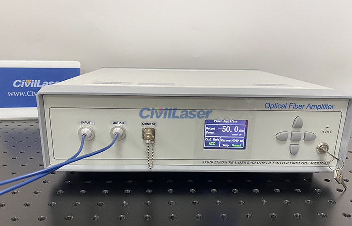 これは 1030~1070nm イッテルビウム添加光ファイバー増幅器です。 ​飽和出力は 0dBm 入力で 40dBm です。40dBm YDFA は高出力増幅器で、追加のモニター インターフェイスを備えています。モニターは、低出力の信号を監視または同期するために使用されます。また、冷却ファンが内蔵されています。 RS2323 インターフェイス、利用可能なソフトウェア、または制御コマンド YDFA で構成されています。