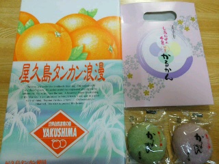 今日はそしゅけの参観日。いわゆる父親参観だね。1時間目は支援学級で、2時間目は通常学級で。毎年、この参観は親もいっしょに何かを作るのだが、今年は珍しく、算数と国語だった。そしゅけは、ちょっと緊張していたのか、いつもより大人しい感じ。先生も、普段はもっとはじけてますと笑っていた。3時間目はテーマはなんだっけかな・・・何かの講習会(出てないけど)そして、4時間目は災害時の引き渡し訓練。学校にいるときに何か災害が起こった場合、子供を親に引き渡す段取りを確認するもの。手順に従って子供を引き取り、そのまま一緒に帰ってきた。そして、夕方、うしゅけが3泊4日の修学旅行から帰って来た。行きと違い、帰りはパパ運転のもと、伊丹空港まで車で迎えに行った。飛行機は2つのグループに分かれての搭乗。うしゅけは行きと同じく先発隊。ほぼ定刻通りに到着し、元気な顔で帰って来た。後発のうしゅけの友達を二人、空港で待つ。およそ1時間半くらい時間があったのだけど、カフェでお茶して、蓬莱で豚まん、シュウマイ、ちまきなどを買ったりしてると時間はあっと言う間だね。この二人、私の顔を見るなり声をそろえて、「うしゅけ、かるかん買ってました?」思わず笑っちゃったよ。実は、私、昔からかるかんに目が無くて、行きの車の中で「かるかん、かるかん、うしゅけ、かるかんな。」と念押ししてたんだ。旅行中、買い物ができるのは最終日、屋久島から出るときと、鹿児島の空港だけだったのだが、かるかんが屋久島にはなかったそうな。なんか三人で一生懸命探してくれたらしい。「かるかんなんてほんまにあるんか~。」私の言葉を疑ったうしゅけは、「もうええわ。かるかんないからタンカンにするわ。」とタンカンのお菓子を買った。屋久島を後にしてからは、先発隊と後発隊は別ルートとなるので、二人とはわかれた。うしゅけは空港でかるかんを見つけて買ってくれた。二人も空港でかるかんを見つけて、うしゅけ、ちゃんと見つけたかな~と話していたらしい。生意気盛りだけど、かわいいとこあるよね。写真、ちょっとかげになったな。かるかん、写真を撮る前に、パパとひとつずつ食べちゃった。う~ん、美味しい~、やっぱ好きだな~帰りの車の中で、三人ともメチャクチャ元気。てっきり疲れて眠るのかと思ってたのに、楽しそうにいろんな話をしていた。三人ともクラスが違うので、持っているネタもいろいろですわ。幸いにもさほど渋滞もせず、30分くらいで戻ってこれた。順番に家に送り届けて、無事、修学旅行終了。お疲れさまでした。おまけ。こっちは妹んとこのひこきの修学旅行土産。ひこきは長崎。出発はうしゅけと同じ日だったのだが、2泊3日なので昨日帰宅していた。あちらも楽しかったようだ。機嫌よく帰って来たって。よかったね。