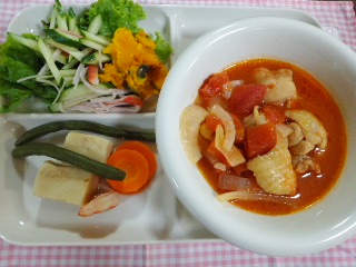 今日、あ、もう昨日か。うしゅけだけが学校。夏休みに入ったはずなのにね。45分が4時間の午前中だけの授業で、総合学習的なもんらしい。みしゃおは一日着替えもせずに、パジャマのまま宿題したり、絵を描いたりしていた。そしゅけは大きなため息をつきながら宿題をしていたが、どこまでやるか自分で決めて、ちゃんとこなしていた。二人が宿題をしている横で、私はナンプレ。定期的にはまるんだよね。いろいろと景品があるのだけど、やるだけでほとんど応募したことがない。はがきを用意しているにもかかわらず、投函しないまま。今度こそ出してみるかな。昨日の夕食。私のお皿。鶏のトマト煮。レシピでは大豆をいれるのだけれど、うちはひよこ豆。サラダ。グリーンリーフ、きゅうり、カニカマ、マッシュしたかぼちゃ。高野豆腐の含め煮。にんじん、いんげん、むきエビを一緒に。その他、かぼちゃとチンゲン菜の味噌汁(たまねぎ氷入り)ご飯(玄米&白米)納豆