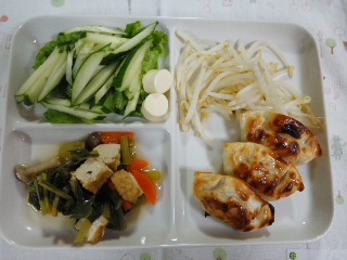 パパ不在時は、超手抜きの簡単献立が常なのだけど、単身赴任となった今、毎日そんなわけにはいかない。量の調整が大変そう。また、多すぎたり少なすぎたりしそうだな。今日はすっかり気が抜けてしまって、夜はうどんで済ませるか~みたいな感じだったのだけど、それではいけないと立ち上がりました、ハイ。でも、手の込んだものを作る気力までは湧いて来ず。お弁当も当分なくなったし、ちょっと夕食の写真を撮ってみたら、相変わらず、盛り付け下手だよね、私私のお皿。餃子。お弁当同様、魚焼きグリルで。もやし。ゆがいただけ。小松菜の煮浸し。小松菜、しめじ、厚揚げ、にんじん。いつも通りの量を作った。半分冷凍しておくつもり。レタス&きゅうり。キャンディチーズ。写真にはないけど、きのこたっぷり味噌汁(玉ねぎ氷入り)ご飯(玄米&白米)納豆ちょっと「つくりおき」を考えてみようかなぁ。
