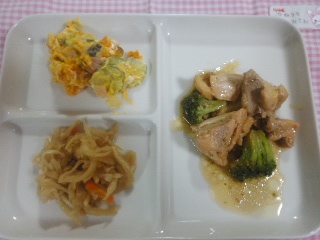 昨日は、みしゃおの部屋の床暖房の工事の見積もりがあがってきた。大阪ガスのお兄さんががんばってくれたようで、ちょっと嬉しいお値段になっていた。大阪ガスのお兄さんが帰ったあと、普段から家のメンテをお願いしている業者さんが来た。作業してもらっている時間と、うしゅけとみしゃおが塾に行く時間が重なった。慌ただしいまま、とにかく子供だけ夕食を食べさせて、私は後で一人で食べたのだけど。私のお皿。鶏の鍋照り。ブロッコリーも一緒に。かぼちゃサラダ。マッシュしたかぼちゃにきゅうりとハムを加えて。切干大根の煮物。にんじん、うすあげと一緒にシンプルに。写真にはないけど、ほうれん草としめじのお味噌汁(玉ねぎ氷入り)ご飯(玄米&白米)納豆。写真を撮ってみてボーゼン。なんか病院食みたいになっちゃったよ・・・・