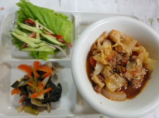 朝からけっこうな量の雨が降っていた。昨日のうしゅけの懇談に続いて、今日はみしゃおの個人懇談。こっちは保護者と先生の二者懇談。入学の時に出した書類にあれこれ心配事を書き込んでいたので、先生も気にかけてくれてはったようだが、「心配することないと思いますよ。」と。確かに、思っていたより学校に馴染んだとは私も思っている。お勉強に関しては、「正直、もっとできないと思っていました。」と。確かに私もそう思っていた。実力テスト、中間考査、期末考査とすでに三回テストを受けた。決して良い成績とは言えないけど取るべき点は取っているという感じ。このまま内部進学で大学まであがることが希望なので、とにかく日々の勉強が大事。定期考査はきっちりとおさえておきたい。本日の夕食。6時からそしゅけの歯医者の予約があったので、あまり時間のかからない献立にした。私のお皿。グリーンリーフ、きゅうり&カニカマ。小松菜の煮浸し。冷凍保存していたものを解凍。キャベツとひき肉のトマト煮。奥薗壽子さんのレシピ。言うなれば巻かないロールキャベツ。粉チーズをたっぷりかけるととっても美味しいのだ。あとは、しめじとうす揚げの味噌汁(玉ねぎ氷入り)ご飯(玄米&白米)納豆ま、いつものパターンだね。
