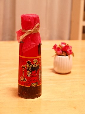 ラー油の写真を撮ってたら、なぜか入ってくる黒い影。