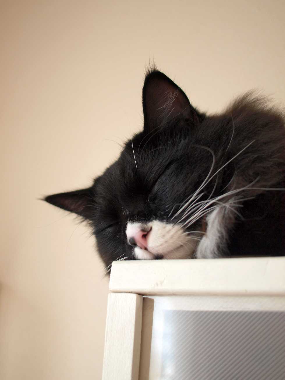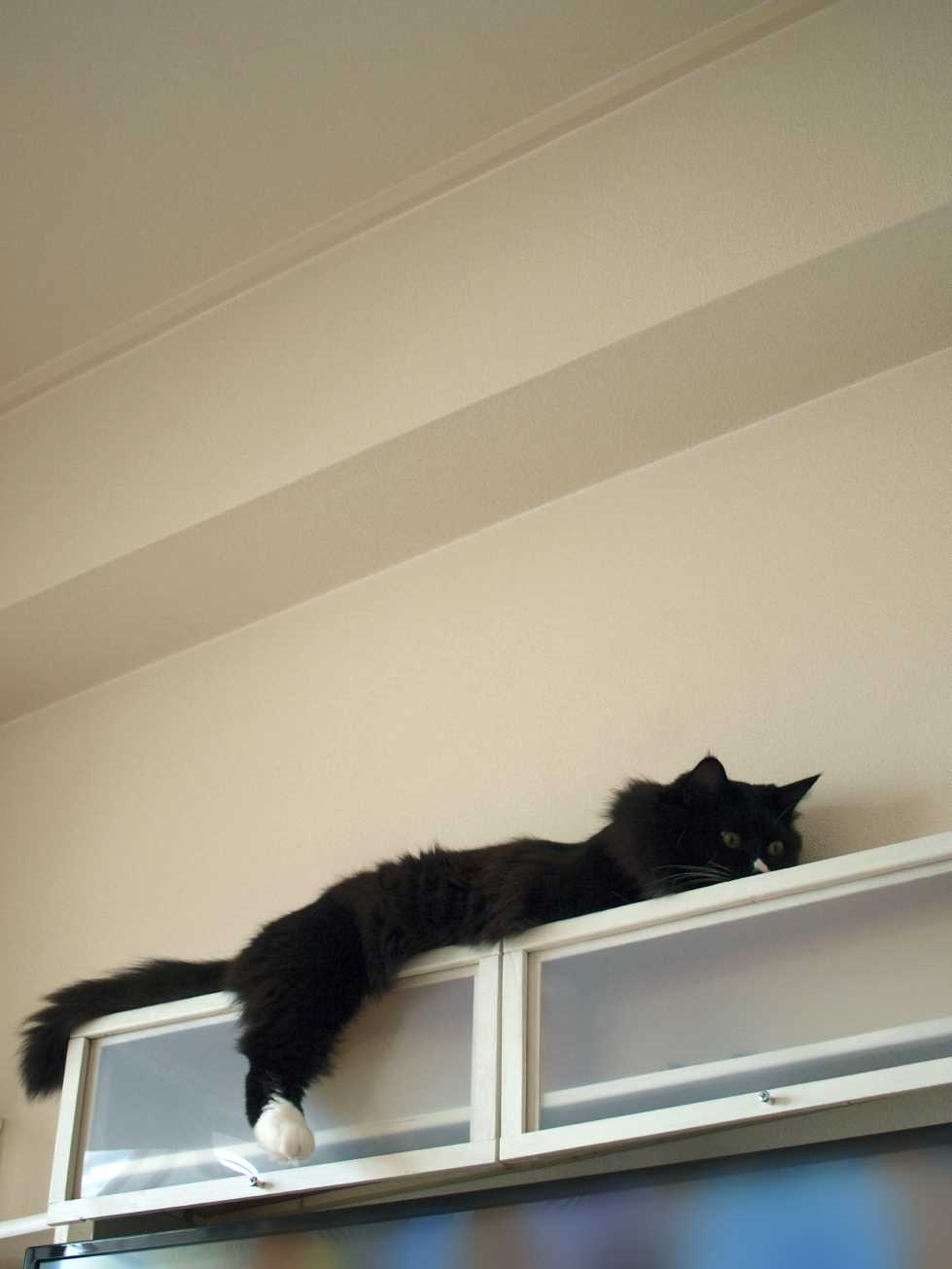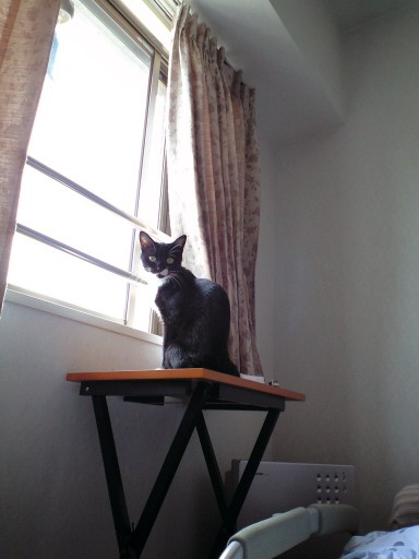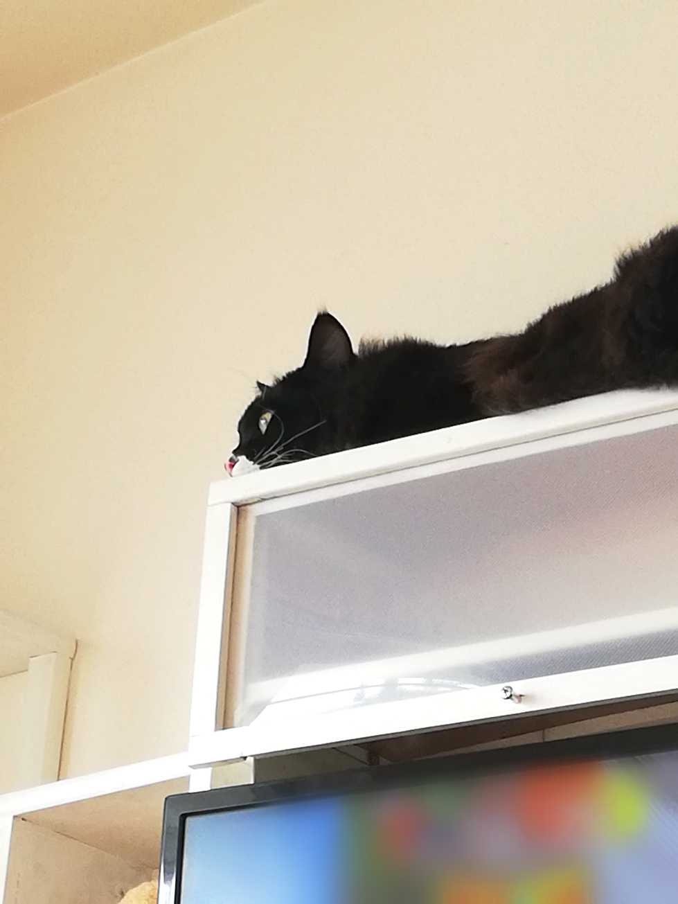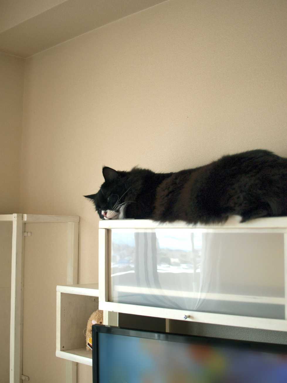 テレビ棚の上で眠そうなくーちゃん。
