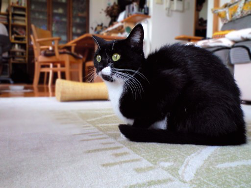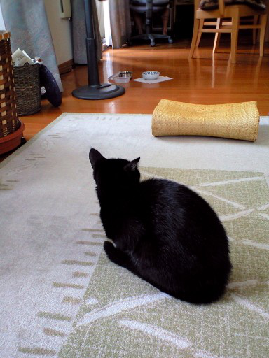 しっぽ垂らして座るくーちゃん。