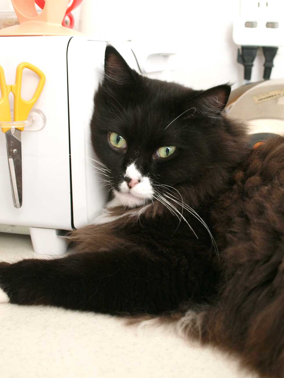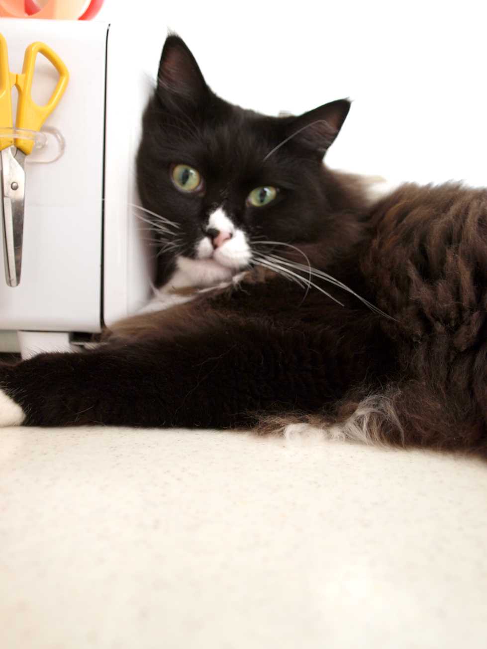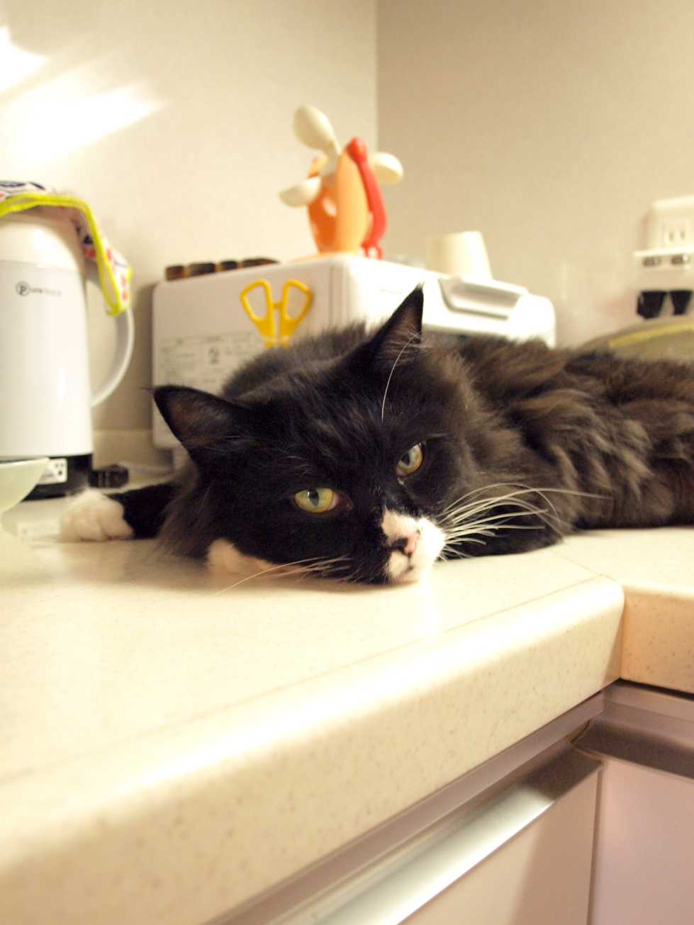 高テーブルで寝るくーちゃん。