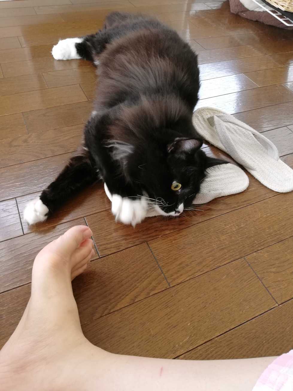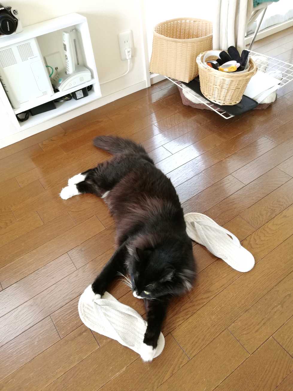 ルームサンダル噛むくーちゃん。