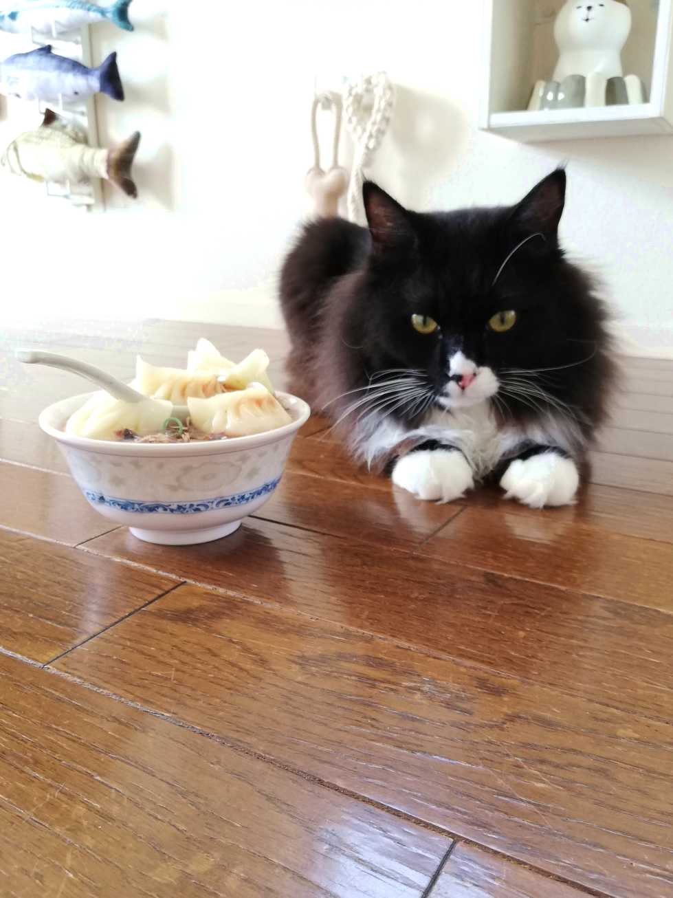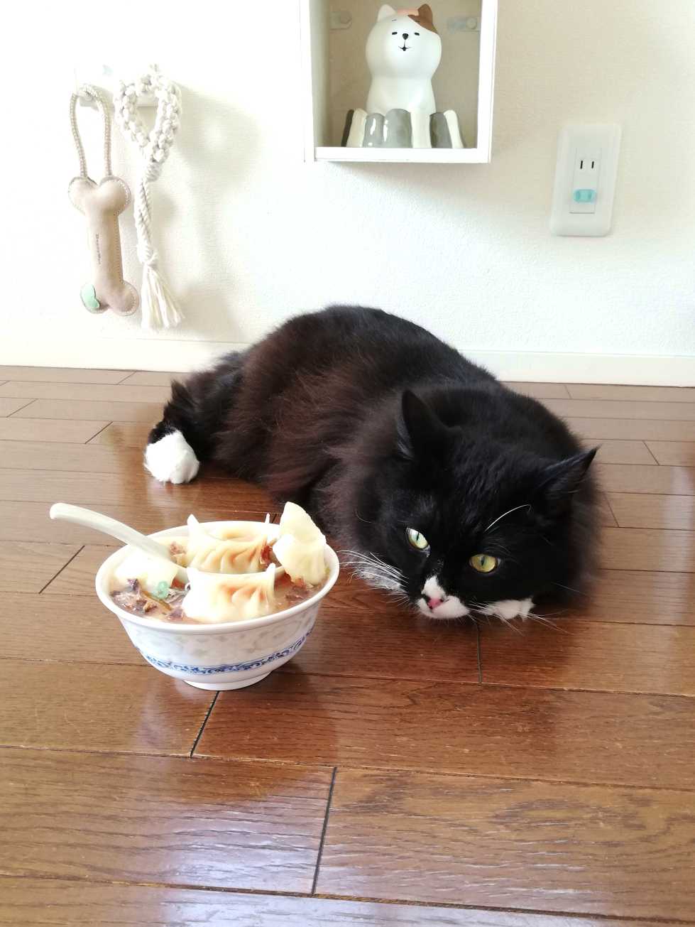 水餃子と並ぶくーちゃん。