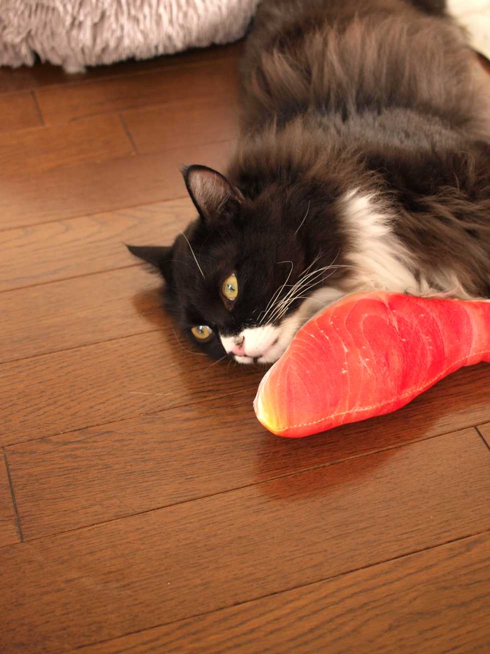 シャケでくつろぐくーちゃん。
