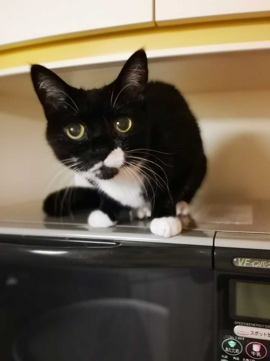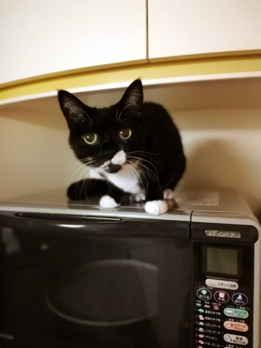 レンジの上にいるくつした。