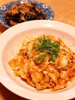 鶏ピカタとキャベツのケチャップ炒め、