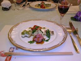 昨晩、同じ区内にあるグリーンパレスという結婚式場で行われたディナーショウまがいの晩餐会に妻と行ってきた。時々、区報に載っている案内を見てグルメに目聡い妻がいつのまにか予約しているのである。今回は和洋懐石料理を「和」と「洋」を融合した尺八とキーボードの生演奏をバックに癒しのひと時を楽しんできた。それなりの服装で行き、生演奏を聴きながらコース料理をいただくと、普段できない会話が自然とできていいものである。料理についてはあまり細かいことのわからない私は凄く美味しかったと評価するしかないが、献立を二、三紹介しておきます。五種類のオードブル肉料理。更に握り寿司も出てきた。お楽しみのデザート