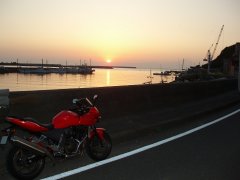 今日は、ふらふらぁっとバイクでお出かけ。初めは、スタンドまでちょっと給油でもと思っていたのだけどあまりに天気が良かったんで、ちょこっとだけ走ってきました。でも、さすがはシルバーウィーク、どこへ行っても車、車、車。結局、三崎までしか行けず終了。三崎からの夕日は、海に沈まないで、伊豆半島にに沈むんですね。シルバーウィーク、連休を期に皆さんお出かけっていう人でなんだかどこへ行っても、そそくさ、そそくさと落ち着かない感じ・・・・。うーん、こういう時こそ、自分は落ち着いて、の~んびりと綺麗な景色でも眺めながら過ごしてみたいものです。