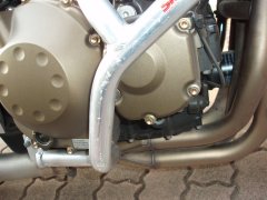 久々のブログの更新です。最近あまりバイクに乗れてあげられていなかったので、今日は、近場に用があったのでバイクで出発。途中、初めて行く場所だったので、道を間違え、あまり広くない道でUターンすることに・・・。そこで、やっちゃいました・・・。かなりスピードも落として、ギリギリまで踏ん張ったのでスラッシュガードのおかげで、その他のキズは最小で済みましたけど・・・・。マフラー側でコケたのは初めて。うーん、油断大敵ってことかな。話は変わって、我が家に新しくやってきた奴。スコテッシュフォールドという長たらしい種類の猫。血統書付きらしいけど、実は捨てられ猫。親戚の知り合いのところで飼われていたらしいけど、急遽飼うことができなくなり、我が家へやってきた。最初は警戒心バリバリで、触る事さえできなかったけど、近頃は、多少丸みをおびてきたようにみえる。時期慣れるのかも・・・。