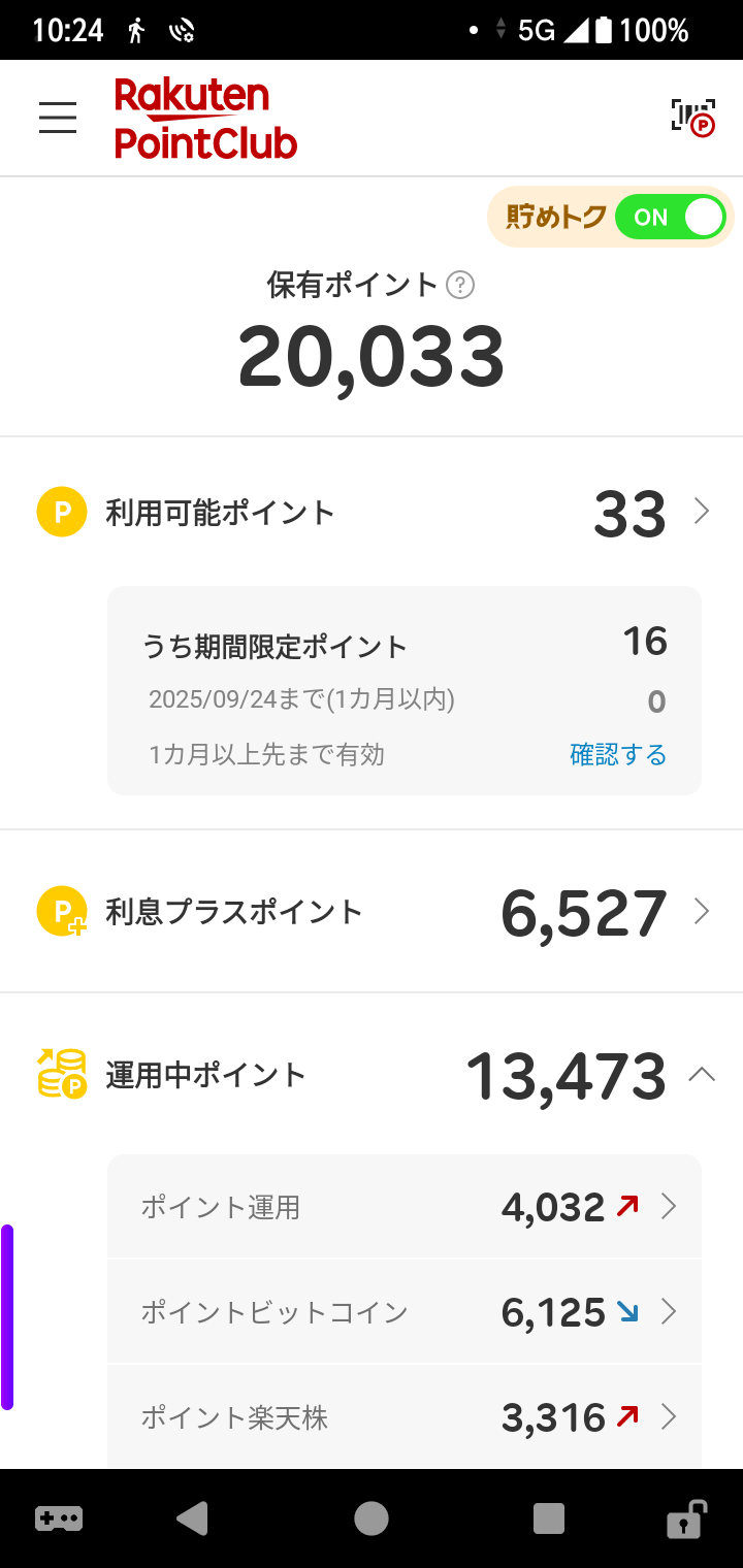 ポイント運用、変動なし!