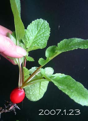 昨年の11/3に種まきした赤丸二十日大根が大きく成って来たので 試しに1本抜いてみました~ ってまだ小さいかな11/7の芽が出た時 12/12の間引き後 現在 結構ワサワサ~っと成って来ています 苗からの白菜、水菜、菊菜のその後ですが白菜は夜、光が有ると 綺麗に丸まって 来ないと聞きましたが...外灯や部屋の灯りがもれているからか 中心が空洞に成っています 食べごろは何時なんでしょうね~ 水菜は何度か収穫していますが、また生えて来ていますよ~ 昨年の年末からお仕事の話入っていたのですが、先方さんが何処に頼むか 検討待ちだった結果、私にっとなったのですが聞いていた予定より1ヶ月も 早く完成させたいと・・・ 明日からフル回転で仕事しないと間に合いません~ 頑張らないと~