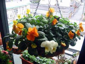 寒い~!!今朝から雪が降っています 結構風が強く吹雪いている~ 家での初雪です 積もるまでは降らないと思うけど・・・どうかな~ 10/7に作ったパンジー&ビオラのハンギング、一時お花が途切れて いましたがまた復活して来ました おしくらまんじゅうのようにギッシリひしめき合っています 今日も今からお仕事です~ またゆっくり訪問させて頂きますね♪