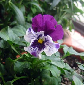 見元さんの名無しビオラですが・・・植え付け時にお花を全部 取って以来やっと1輪咲き出しました~ ビオラではかなり少ないフリフリの花びらはやっぱカワイイ~ こちらは花茎が長く、お花も小さいプティオラ・バニーイチゴミルク ずっと有る程度 咲き続けていますが、色が淡いのとバニー系でお花が小さいので 花盛り~って感じに成らないのが惜しいです こちらもバニー系ですが名無しちゃんです 花びらが上、真ん中、下と3色なのと、 上のブルーに白いピコティが入るのがお気に入り 一番日が長く当たる所に居る、名無しビオラは 少し花数が増えて来て やっぱりパンジーよりビオラが好きだな~ 今朝は40分も寝坊してしまった