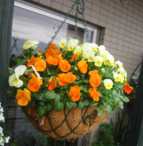 2006.10.07に植えた パンジー&ビオラのオレンジから クリームイエローのグラデーションハンキングがまぁるく 咲いています やっぱビオラだけの方が よかったなー こちらは去年からのブラキカム咲いたー 去年の春植えたイソトマ、ペチュニアのサフィニア、白妙菊 ブラキカム、アイビーのハンギング、ベランダで冬越ししました 植え替えが面倒でほったらかしにしていただけなんですが、 暖冬様、様ですね~ 昨日仕事帰りに苗屋さんに寄って買っちゃいました サントリーの2007年新作、八重咲き小輪タイプのペチュニア 『フリリア』のお花が楽しみ 今日はお休みで適当にしかやっていなかったベランダの花がら 摘みを真剣にやったら2時間かかりました なんだか毎日とっても眠い・・・