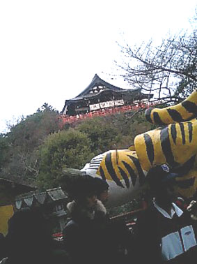 上の写真は手前に世界一の大福寅から本堂を見上げたものです。