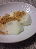 冷蔵庫で冷やして きな粉をかけて いただきます。(でも、ちょっとお味見で 熱々を食べたら これもまたおいし~