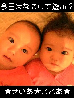 10月22日早いもんです今日で9ヶ月になりましたあんなに小さくて抱っこするだけで壊れちゃうんじゃないかってくらい小さかった心愛と星愛今では、おんぶ&抱っこで重いです嬉しいことですねみんなのおかげですこんなに順調に大きくなってくれて、成長してくれて、本当にママは幸せですこれからも楽しくニコ二ッコでいようね