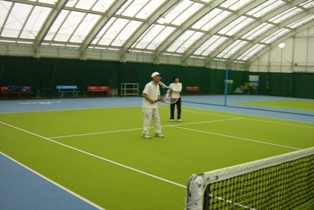 5月13~14日くつわ池テニスクラブのメンバーは合宿に。あいにくのお天気、「でもテニスがしたい」と言う思いで東奔西走、3種類のコート(カーペット・オムニ・ハード)を調達しました。もちろんココも参加、ペンションのふくちゃんに歓迎されましたが、わんこ苦手なためお友達にはなれず~