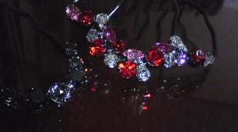 スティックはおまけーというルースの新色を買いました。おまけスティックが亡き者になってしもうた。もう一回撮りなおし。今度はブレててごめんよ。ルース可愛い。新色ライトシャムにしました。淡いピンクとフューシャ、クリスタルなどなどで見応えのある色合い。パンチが効いてて可愛いよー。おまけのスティックは、これは・・・なんだろ?デュースティックと違うのよね。端から二番目がオーバルのスワロになってるの。色はブラックです。お仕事モードで活躍しそうです。ふう。500円デュースティックを我慢しといて良かったわ。ライトシャムのルースに、シンプルなブラックのスティックがついてくるなんて、これ1セット買ったら、それだけで満足できちゃいそうなセットの仕方よね。ついつい他も買っちゃうんだけどね。一応言ってみた。(笑)今回のルースは、お花モチーフじゃないので派手色にしてみました。ピンクのセーターや、Aライン黒ジャケット、さらにダボダボ黒セーターなんかにも良さそうです。初めて買ってみたんですが、見れば見るほど、深いわー。可愛いだけでもないし、派手なだけでもないし。特に真ん中。石がこぼれそうについててため息出ちゃいます。満足満足。ルース、とっても気に入りました。