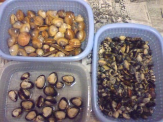 ねこみち家のダンナ様、潮干狩りシーズン突入です。 今日の獲物はあさり、アオヤギ、赤貝、トリ貝(ひとつ)、ミル貝(ひとつ)、マテ貝(ふたつ)。 獲物は採ってきた人がおいしく料理する、がねこみち家の掟。 ダンナ様が料理番。 あさりは砂抜きが必要なので明日のお楽しみ。 ミル貝はバターソテー、トリ貝は湯引きしてお刺身で。 アオヤギ、マテ貝はトマトソースでパスタに。 赤貝は佃煮に。 新鮮だからどれもおいしい~♪ ダンナ様が調理中、私は缶チューハイで乾杯してました。 今日で1件のサービスが終わったのでね。 家から自転車で片道20分。 私が訪問しているなかで一番遠いお宅だったので、終わってほっとしたような、寂しいような。 ほぼ1年訪問していたお宅なので、すっかりお互いに馴染んで仕事もやりやすかったのですが。 諸事情により今日が最後の日となりました。 会うは別れの始まり、と言いますが、しばらくはいろいろ思い出すでしょうね。