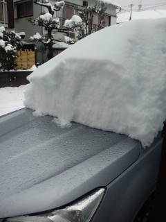 これは昨日の画像。まだ雪かき前に、雪遊びしようか〜クーちゃん〜ってとこです。今日は午前中に1軒訪問、午後に1軒訪問でお仕事終了。暖かくて晴れて助かったけれど、雪がとけて道路はビシャビシャ、除雪してない道はぐっちゃぐちゃだし、屋根雪の溶けたのが風にのって飛んでくるし、なかなか難儀な1日でした。難儀といえば‥。屋根の雪が、車を直撃しまして。車の屋根がぼっこりへこみました。ダンナ様がディーラーさんへ行って見積もってもらったら修理になんと30万ですって(>_