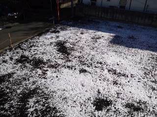 予報通り降りましたね。 私は午前中でお仕事終了だったので、まだ小雨のうちに帰宅できました。 いつもは砂が飛んでくる東隣の空き地も真っ白に! 道路などには積もりませんでしたが、場所によっては明朝、凍りそう。 みなさま足元気をつけて移動しましょうね。