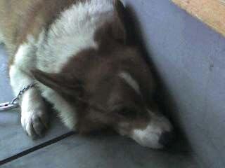 クーは私の騒ぎをよそに一日、そよそよ涼しい玄関で夢見心地…。