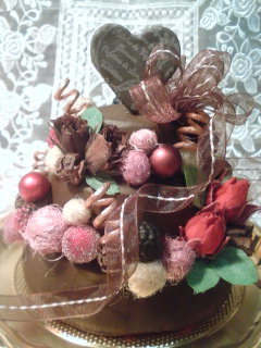 プリザーブドフラワーやフェイクの飾りをグルーガンで土台にバランスよく接着して完成。