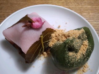 義母が持ってきてくれた銀座あけぼのの桜もちと草もち。